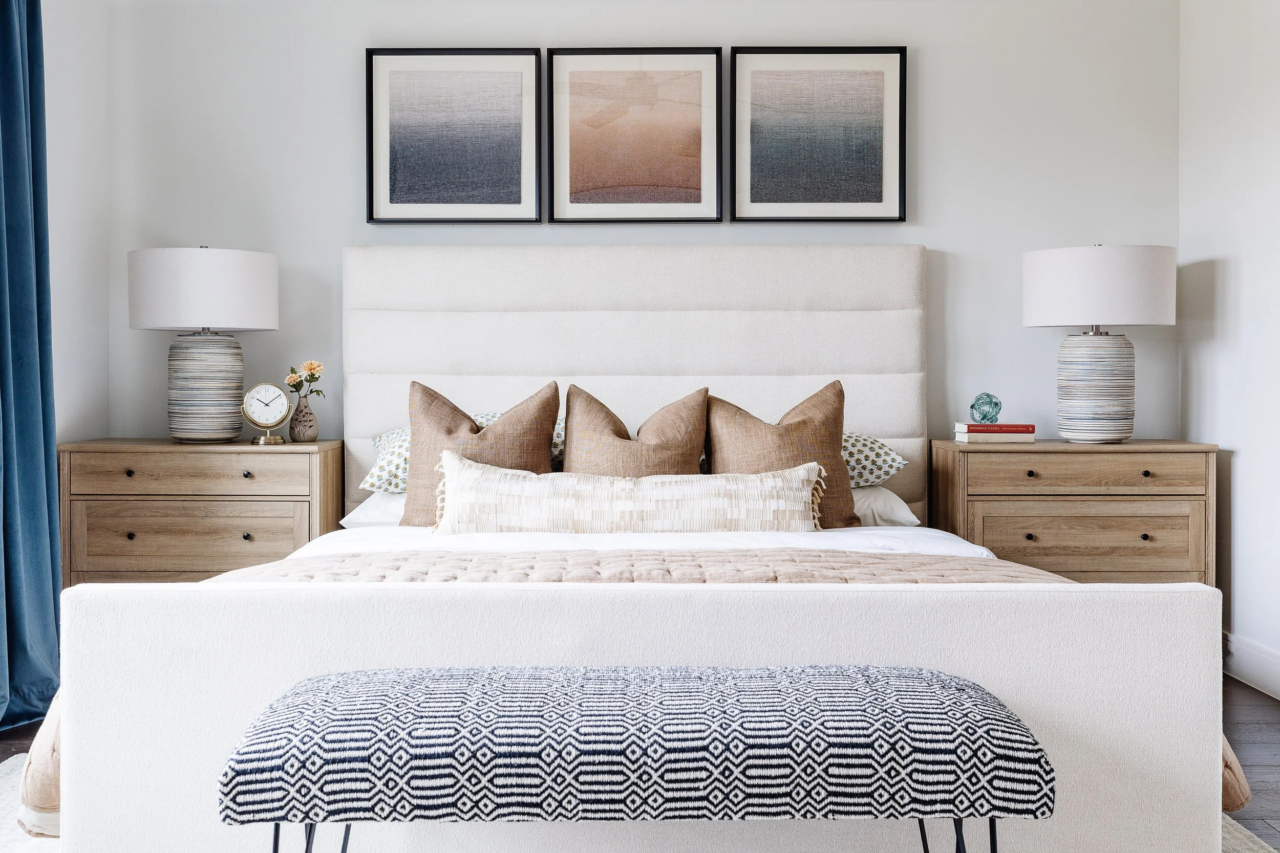 Bed Frame: A neutral upholstered frame always gives a feeling of luxury, no matter the size.